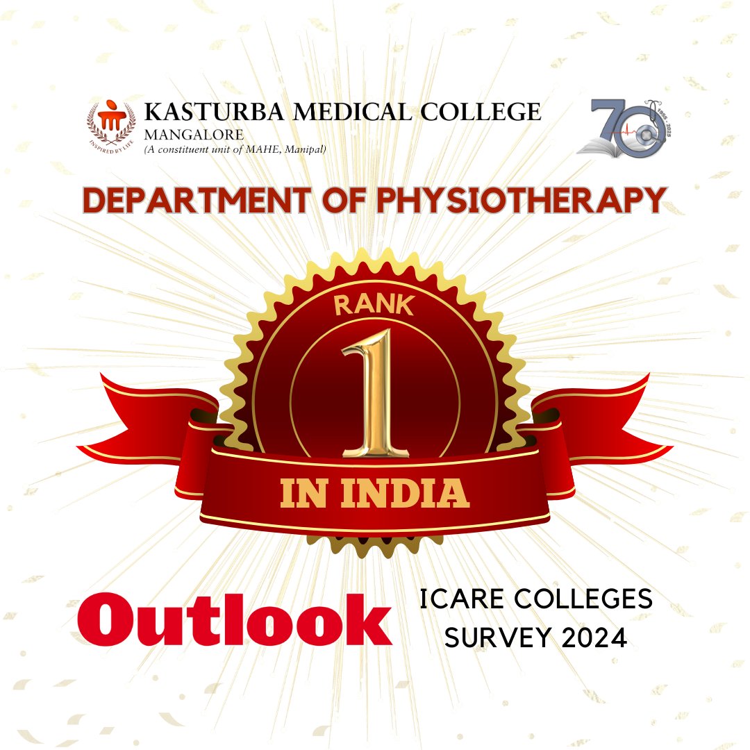 Department of Physiotherapy at Kasturba Medical College, Mangalore, has been ranked as the No. 1 Physiotherapy Department in India by the Outlook ICARE Colleges Survey 2024!