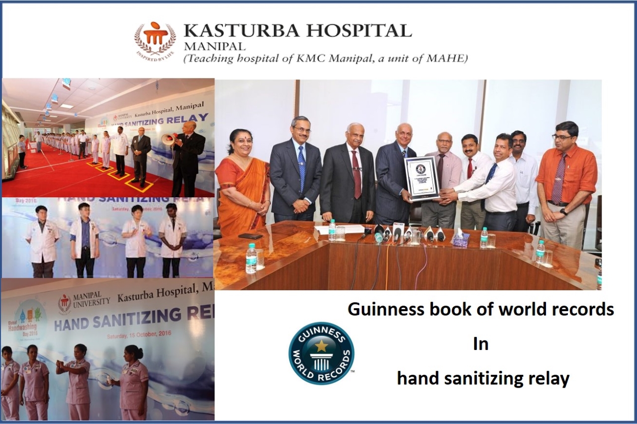 Manipal University and Kasturba Hospital, Manipal completed a great task of attempting a Guinness World Record in Hand Washing at the Marena Sports Complex on October 15, 2016 when 3422 students and staff and others washed hands as per the norms required for the record. It took over 16 hours to go through the exercise, which at the end was a job well done. All coordination with clock-work precision and the smooth conduct of the event was praiseworthy. Every minute detail was well attended to. The hand washing relay began at 7 am when the Pro Chancellor of Manipal University, Dr H. S. Ballal sounded the hooter. It ended at 11.30 pm. Students, doctors, nursing staff and administrative teams of Kasturba Medical College and Hospital Manipal, and health care institutions comprising Kasturba Medical College, Manipal College of Dental Sciences, Melaka Manipal Medical College - Manipal Campus, School of Allied Health Sciences and Manipal College of Nursing, and Kasturba Medical College Mangalore, Manipal College of Pharmaceutical Sciences and School of Allied Health Sciences took part. Five Senior Advocates of Udupi District and 4 Police Personnel were the witnesses. The time keepers were physical education teachers from other colleges in and around Udupi and Mangalore.