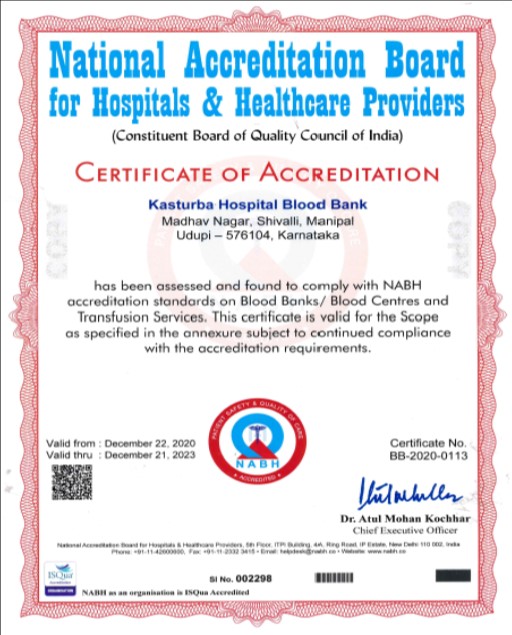 1) Department of Immunohematology and Blood Transfusion received NABH certification.