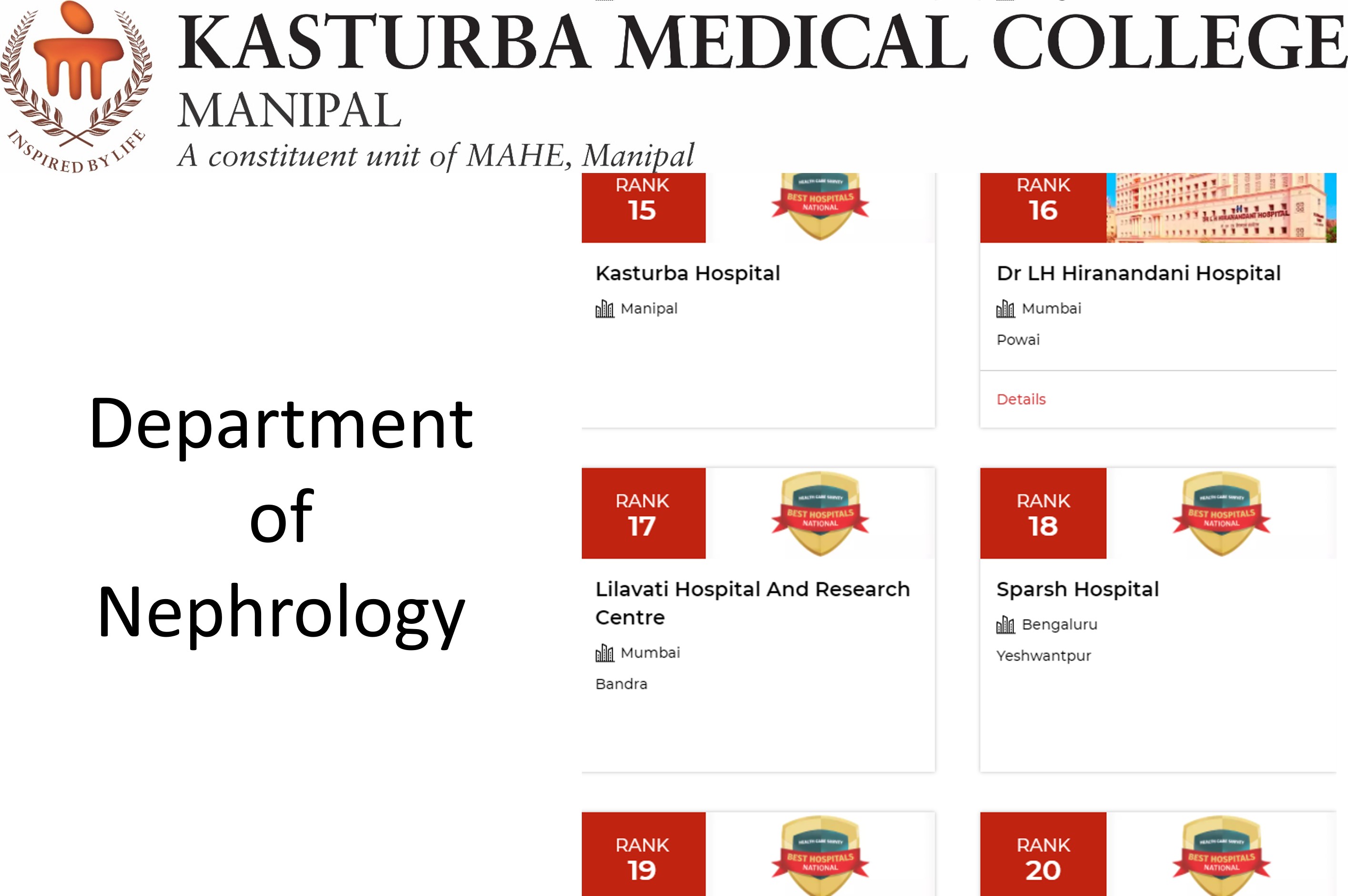 5) Department of Nephrology ranked no. 15 in Best Nephrology Hospitals of India and 5th best in South India - Times of India.
