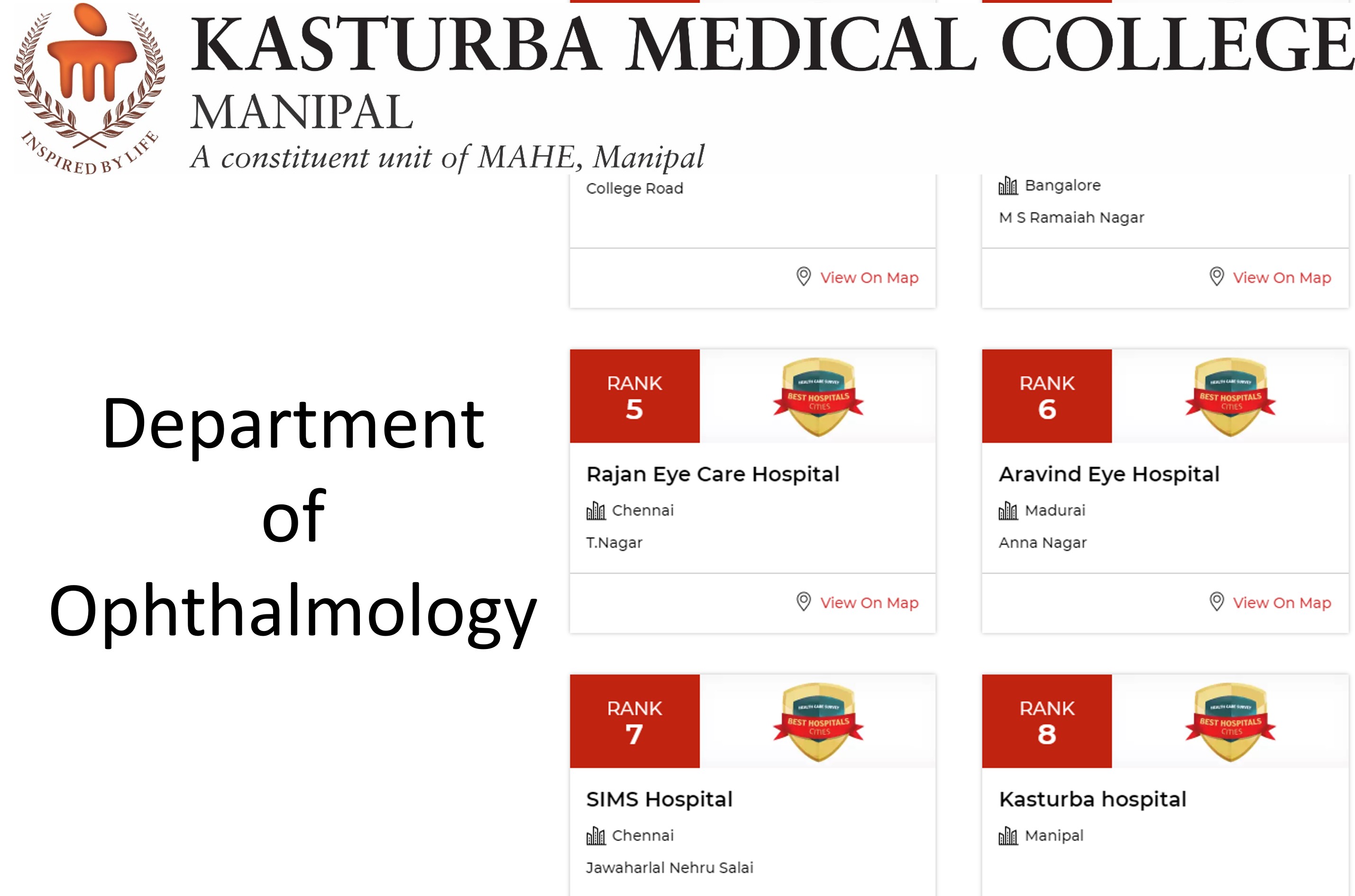 6) Department of Ophthalmology ranked 17 in best Ophthalmology hospital of India & 8th in South India – Times of India.