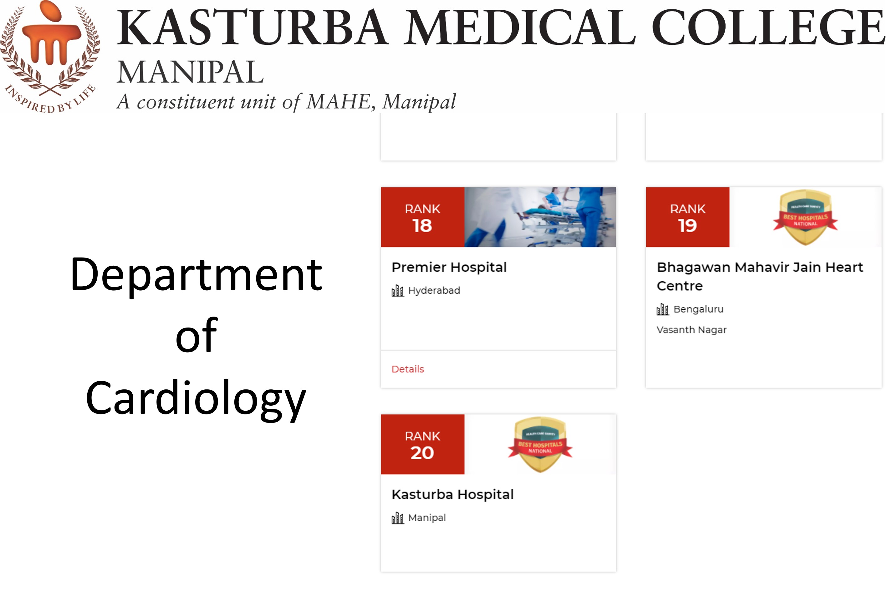 9) Department of cardiology ranked no. 20 in Best Cardiology departments of South India - Times of India.