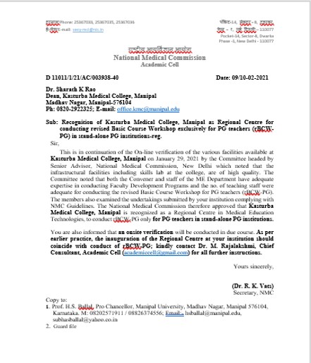 12) Medical Education Department has been recognised as one of the regional centres for PG teachers from standalone PG teaching Institutions by NMC.