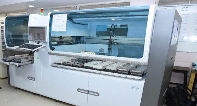 The Biochemistry department and the other lab departments are interconnected to the hospital by a Laboratory Information System (LIS) for speedier and more accurate reports. Samples are bar-coded and fed into the equipment, automatically performing the tests indicated by the bar code. The test results obtained are instantly interphased online to the doctor's desk after verification eliminating transcriptional errors.
