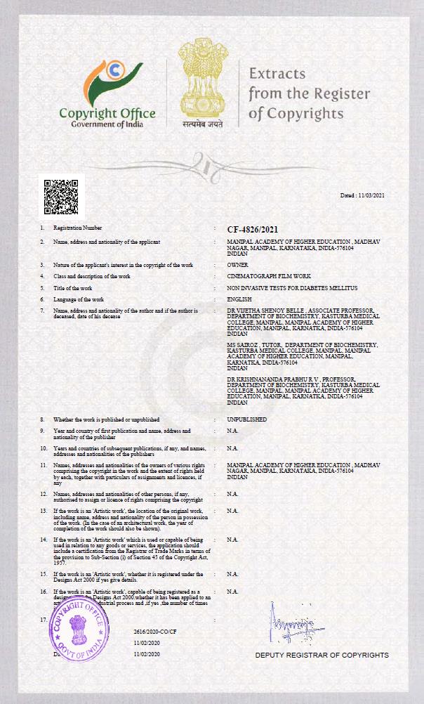 19) Dr. Vijetha Belle received Copyright