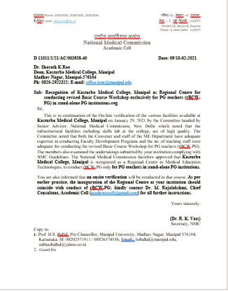 8) Medical Education Dept. has been recognised as one of the regional centers for PG teachers from stand alone PG teaching Institutions by NMC.