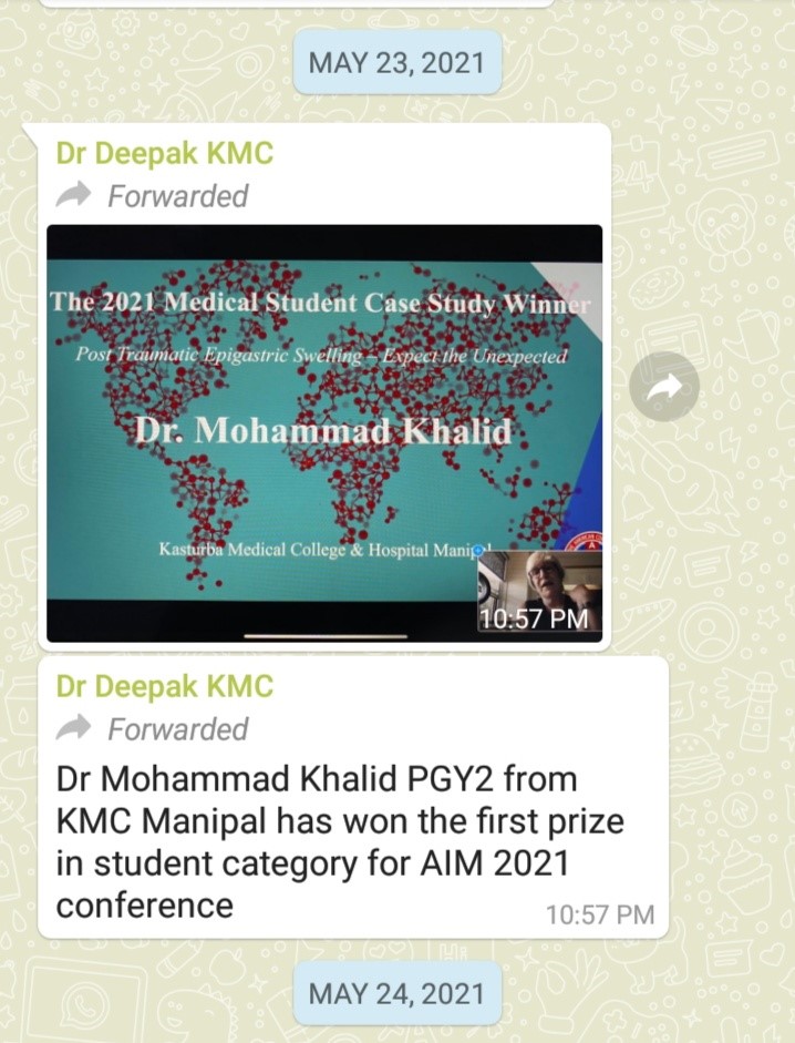 17) Dr Mohammad Khalid won first prize in student category for AIM 2021 conference .