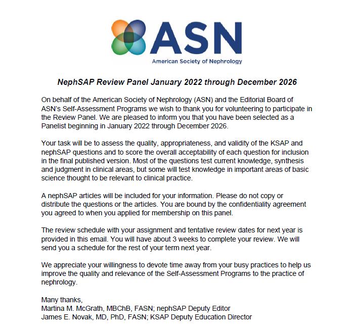 34) Dr. Ravindra Prabhu A (Nephrology) NephSAP Review Panelist from January 2022 through December 2026.