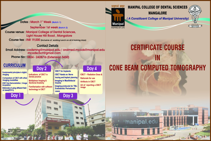 Certificate course is conducted from Feb 22nd to 25th 2017 at the Department of Oral Medicine and Radiology, Manipal College of Dental Sciences, Mangalore