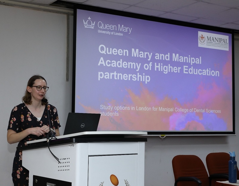 Institutional Academic Reputation Cell, MCODS, Mangalore with the support of Office of International Affairs and Collaboration organised a Career guidance program titled “Higher Education at Queen Mary University, London”. This program was held at Medical education hall LHH. Ms Claire Canning, International Partnership Manager, Queen Mary University introduced the students to the university, the dental college as well as the dental program offered and spoke about the details of the partnership with Manipal Academy of higher education. The program was attended by 63 interns.