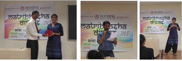Matri Bhasha Divas was conducted on 21st February 2018 in collaboration with KMC Mangalore. The following competitions were held for the same- HINDI Elocution, Poetry writing and Kannada essay writing competition.