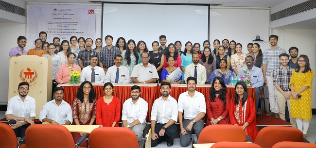The Department of Prosthodontics, MCODS, Mangalore conducted a continuing professional Development Programme on “Eye for Implantology” on 27th August 2019 at Medical Education Hall, Light House Hill Road, KMC, Mangalore. Dr. Dilip .G. Naik graced this Occasion. Dr. Shobha Rodrigues and Dr. Thilak Shetty elaborated on Diagnosis and treatment planning and anatomic considerations. Dr. Mahesh. M spoke on Implant surgical protocol. Dr. Umesh Pai spoke on Impression techniques in implantology. Dr. Mathai Joseph conducted a Panel discussion and addressed queries raised by the participants. Following these talks, there was a hands on workshop for all the delegates on implant placement on mandibular models, suturing in models, and impression making with Pentamix system. Dr. Joanna demonstrated Suturing Techniques to the Participants. “POST & CORE WORKSHOP” was conducted on 28.08.2019 Session 1 Lecture series on post principles by Dr. Shobha.J. Rodrigues and DR. Puneet Hegde Session 2 Hands on exercise: Post space preparation, Impression making of post space, resin post pattern preparation and fiber post cementation. The programme was emceed by Dr. Sharon Saldanha for the 2 days and was well received by the Audience. Resource Personnel: Dr.Mathai Joseph, Dr. Shobha Rodrigues, Dr. Thilak Shetty. B, Dr. Umesh Pai, Dr. Mahesh .M, Dr. Sharon Saldanha, Dr. Puneeth Hegde, Dr. Joanna