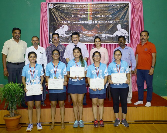 The MAHE Inter Collegiate Table Tennis Tournament was conducted by Manipal College of Dental Sciences Mangalore at the MARENA Mangalore on 10th September 2019.. Congratulations to Team MCODS Mangalore for winning the Runners up trophy in the womens category. In the Inter-MAHE table tennis tournament that took place on the 10th of September in Marena Indoor Stadium, Mangalore MIT Team A won the title in the Men's category, while KMC, Mangalore came out as runners up. In the Women's category; KMC, Mangalore won the title, while MCODS, Mangalore came out as runners up. The MCODS, Mangalore Womens' team comprised of Urmila, Himali, Samanvitha, Adila and Priyanka. The MCODS, Mangalore Mens' team comprised of Kanishk, Dhruva, Yash, Aryan and Vishesh.