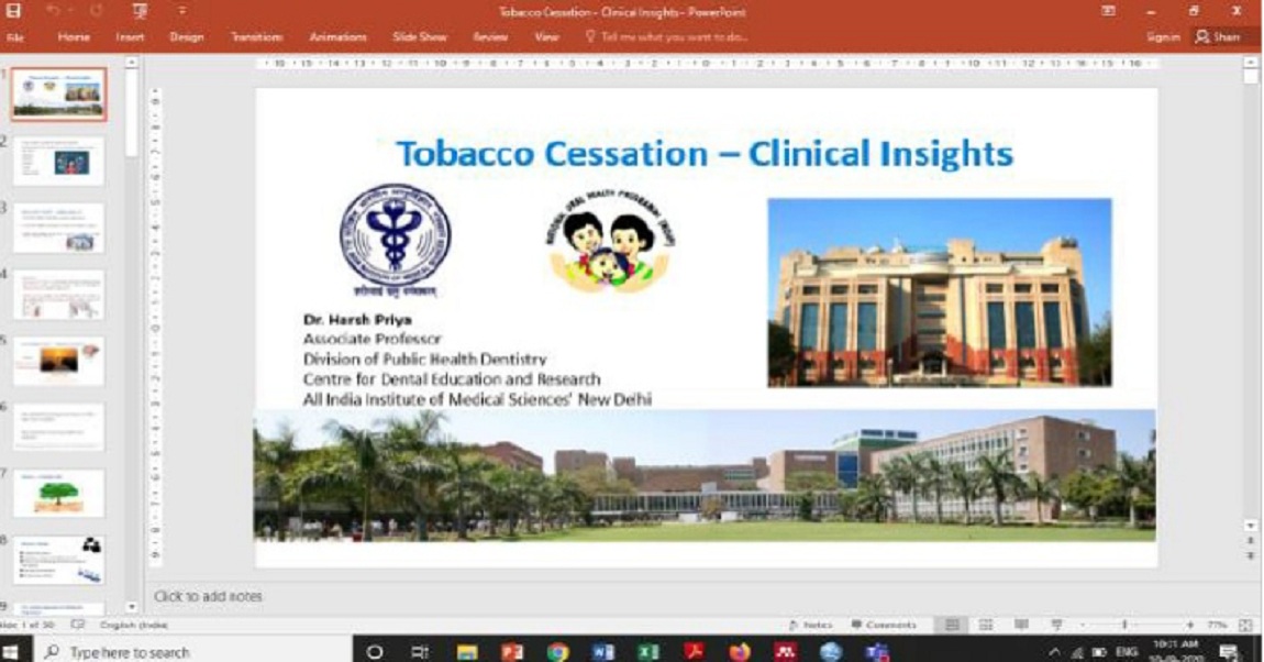 The Department of Public Health Dentistry, Manipal College of Dental Sciences, Mangalore, in association with Alumni Relations Manipal College of Dental Sciences (ARMCODS), Mangalore conducted a Continuing Dental Education Webinar on “Tobacco Cessation: Clinical insights” on 31st August, 2020.