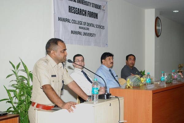 Dr. Dilip G. Naik, Dean Manipal College of Dental Sciences, Mangalore, presided over the function. He commended the work done by the staff mentors of the research forum Dr. Ravikiran, Dr. Swati and Dr. Joanna and congratulated the students for their enthusiasm for participating in research activities, particularly this workshop. He said, Manipal Academy of Higher Education has always been at the forefront in encouraging student research.