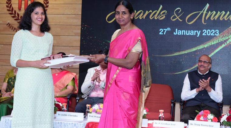 Prof. Prasanna Kumar, Registrar, Karnataka State Nursing Council, Principal, Government College of Nursing, Bengaluru, Assistant Director (Training), Department of Medical Education, Karnataka was the Guest of Honor. He congratulated the awardees and said students studying in this prestigious institution are really blessed and they should use the resources as well as the opportunities available to develop competencies and come out as highly skilled nursing professionals. He emphasized the importance of quality care and stressed on the need to develop competencies in leadership. He advised the students to prepare themselves to face the challenges of the future and build a strong resilient healthcare system. He encouraged the students to be brand ambassadors and carry the legacy of the institution, wherever they go. He also said one should be proud to be a nurse and be optimistic always.