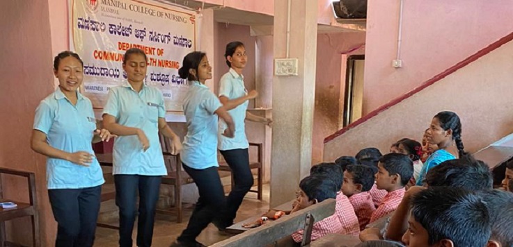 The Department of Community Health Nursing and students of IV year BSc Nursing, Manipal College of Nursing Manipal, MAHE conducted an awareness session on Hand hygiene in Bharathi Higher Primary School, Kuntalanagara, Udupi District.
