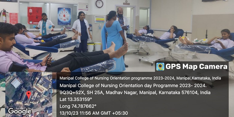 The Health and Social Welfare Committee of Students Nurse’s Association 2023-2024, Manipal College of Nursing Manipal, MAHE, Manipal organized a Blood Donation drive on 13th October 2023 at Blood Bank, Kasturba Hospital, Manipal between 9.00 am and 4.00 pm. Out of 90 volunteers’, 60 could donate blood after the screening. The event was coordinated by Ms Asha Thomas, Chairperson and Ms Filmiya Joseph, Secretary, Health and Social Welfare Committee under the guidance of Mrs. Ranjani P, Assistant Professor -Senior scale, Faculty Advisor and Mrs. Janet Alva, Assistant Professor, Faculty Co-advisor, Health and Social Welfare Committee, Manipal College of Nursing Manipal, MAHE, Manipal. The session contributes to SDG: Goal 3- Good health and wellbeing.