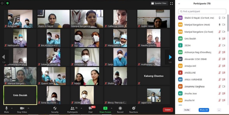 Department of Medical-Surgical Nursing department of Manipal College of Nursing, MAHE, Manipal conducted five continuous nursing education on oncological nursing-related topics to the staff nurses of Manipal Hospital Bangalore from 5th April to 30th April 2021 through Microsoft Teams and Zoom online Platforms.