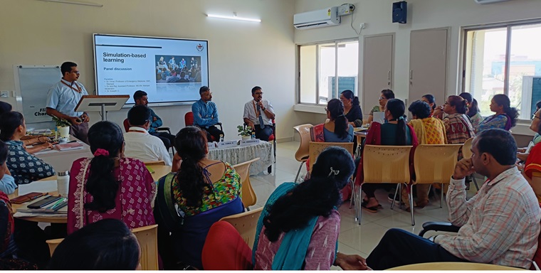 "The curriculum is like the wind—something we can feel but cannot see; it is dynamic and collaborative," said Dr. Sreejith Govindan, Deputy Registrar – Evaluation, Health Sciences, MAHE, Manipal, and Associate Professor of Microbiology, Department of Basic Medical Sciences, MAHE, Manipal, who was the resource person at the conclave. He emphasized that the curriculum has evolved from the 5‘D’s: Definition, Discovery, Dream, Design, and Destiny. He elaborated on those steps through Appreciative Inquiry with small and large group discussions.
