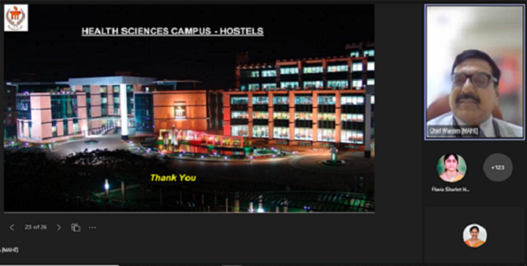 This session was followed by a virtual orientation to the physical set up of MCON, MAHE building, Library, Student Support Centre, MAP, which was coordinated by Mrs Jackline Prathibha, Lecturer, Department of Fundamentals of Nursing, MCON Manipal through the MS Teams virtual platform.