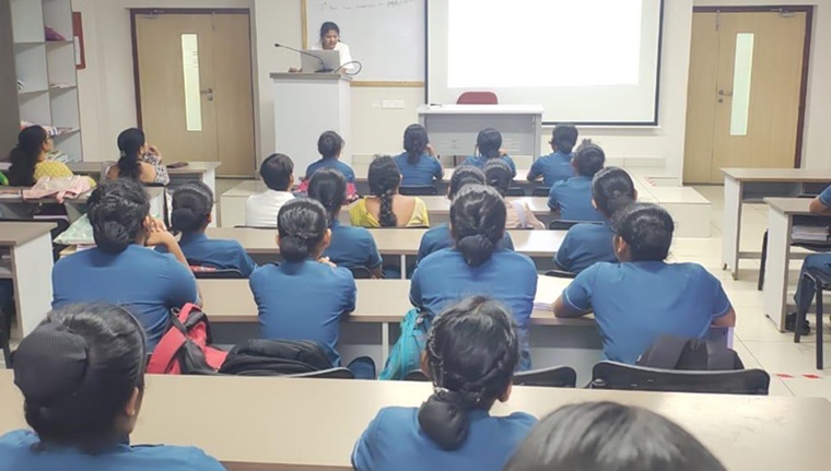 Manipal School of Nursing, MCON, MAHE Manipal hosted a guest lecture on "Role of nurse in the Labour Room” on 13th October 2025, between 3.00 pm – 4.00 pm. The target audience is III year GNM students. Ms. Vidhya Manjunath Acharya (DNM Batch 2004-2007), Staff Nurse, University Hospital Sharjah, UAE, was the resource person. She emphasized the role of a nurse in each stage of labour and the protocol followed during medication administration and management.