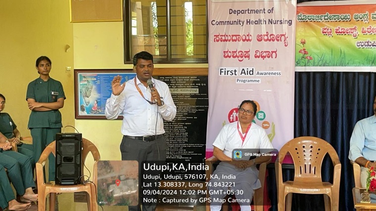 Chief guest Dr. Narasimha Nayak, Medical Officer, Hirebettu PHC, along with Dr Shashidhara Y.N., Professor and Head Department of Community Health Nursing, MCON, Mrs Sumangala, Staff Nurse, Hirebettu PHC, Mr. Krishnamurthy, Principal, and Mrs Prabhavathi, School Health Nurse, Morarji Desai Residential School, and Mr Amol Powar, Assistant Lecturer, Department of Community Health Nursing, MCON, inaugurated the programme Dr. Narasimha Nayak, the chief guest, spoke on the value of first aid and first aid for snakebites. He also talked about how to avoid getting bitten by a snake and how important it is to preserve our habitat. Dr. Shashidhara Y.N. emphasized the value of first aid in schools and emergency crisis management. The MCON students initiated the roleplay on several First Aid scenarios, such as fainting, epistaxis and convulsions, dog bites, fractures, spinal injuries, and CPR, under the guidance of Dr Shashidhara YN. This enabled the M.D.R. school students to become more aware of the significance of acting quickly in medical emergencies.