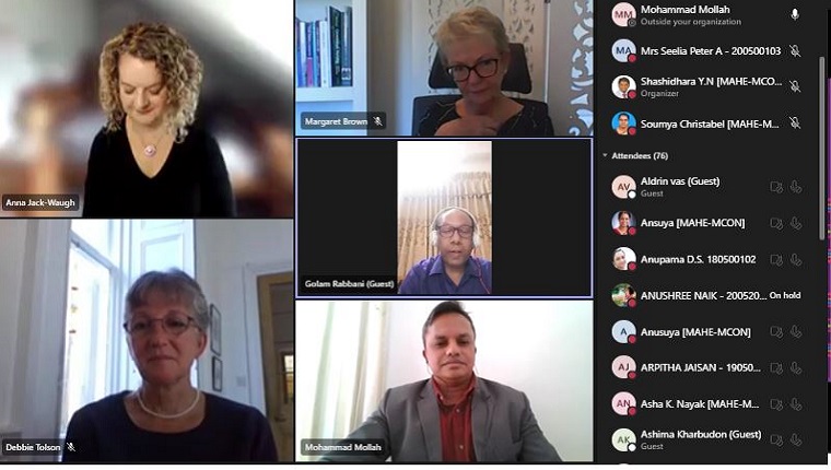The first Global Symposium series flagged off with the subtheme “Sustainable Interprofessional working towards Advanced Dementia, research, workforce development and practice” by Prof Debbie Tolson, Director Alzheimer’s Scotland, Dr Margaret Brown, Deputy Director Alzheimer’s Scotland, Dr Anna Jack-Waugh, Senior Lecturer, Alzheimer Scotland Centre for Policy & Practice, the University of the West of Scotland. They laid their emphasis on evidence-practice policy in the current scenario and practical dementia care. Prof Golam Rabbani and Mr Mohammad M Mollah of Social Welfare and Research (ISWR) University of Dhaka, Bangladesh shared their unique experiences of dealing with education, practice and policy in dementia care in Bangladesh. Dr Elsa Sanatobi Devi moderated the session. The program closure remarks and acknowledgement for the inaugural and subsequent sessions were delivered by Dr Shashidhara YN, Prof & Head, Department of Community Health Nursing, MCON, MAHE, Manipal