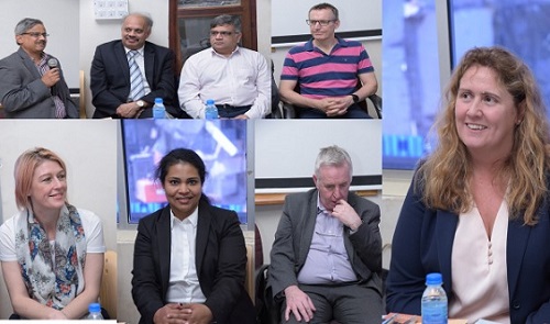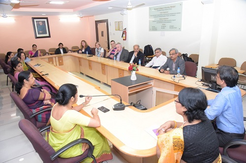 Dr Anice George, Dean, MCON, Dr Raghu Radhakrishnan, Director International affairs and collaboration, MAHE received the guests from Health Education England (HEE), UK. Team from HEE UK included, Prof Ged Byrne, Director, Global Health Exchange, HEE, Dr Colin Wasson, Medical Director, Stepping Hill hospital Stockport NHS foundation Trust Stockport South Manchester, Ms Tracey, Head of Nursing Programme, HEE, Ms Amanda Cheesman, Deputy Director of Nursing, WWL NHS Trust; Ms Sali Thomas, Advanced Nurse Practitioner, WWL NHS Trust; Dr Umesh Prabhu, Senior Lecturer and Mentorship Lead, Edge Hill University, Dr Shashidhara Madapura, Anesthetist, International Medical Graduate Tutor, Stepping Hill Hospital and Prof Raj Murali, Consultant Orthopaedic Surgeon, WWL NHS Trust, Head of International Medical Programme. Dr Elsa Sanatombi Devi, Team leader of Internationalization and global collaboration, MCON, MAHE Manipal introduced the guests to the august gathering with a highlight of how the direct recruitment set in as a pride of SMILE project of MAHE, Manipal. The link began when Dr Alfred Augustine, KMC Mangalore who took the project of collaboration with Edge hill which laid a foundation of trust between the two countries.