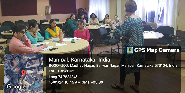 Dr. Toni Bewley, a senior teaching fellow at Edgehill University, UK, and an adjunct faculty of Manipal College of Nursing, addressed the PhD scholars on a qualitative research method, Appreciative Inquiry (AI), on January 15, 2024, at 10:30 AM.