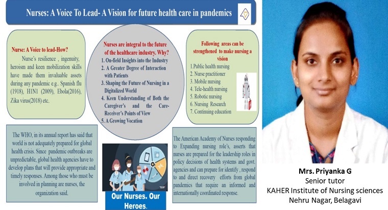 Department of Medical-Surgical Nursing conducted an essay competition on the topic “Future Perspectives of Nurse Practitioners in India”. A number of entries from different Nursing Colleges of India was received. Ms Priyanka Subhash Chavare, a student of 2nd year Nurse Practitioner in Critical Care, Krishna Institute of Nursing Sciences, Satara, Maharashtra and Ms Himani Sing, BSc Nursing student, Panna Dhai Maa Subharti Nursing College, Hastinapur, Meerut were the winners. The department of Mental Health Nursing organized an Elocution competition on the theme: Future of Nursing in the arena of COVID-19. Many students participated in the competition. Ms Shaina Tauro 1st year BSc (N) MCON Manipal won the first prize and Ms Smitha Saldana, 1st year MSc (N), MCON Manipal won the second prize.