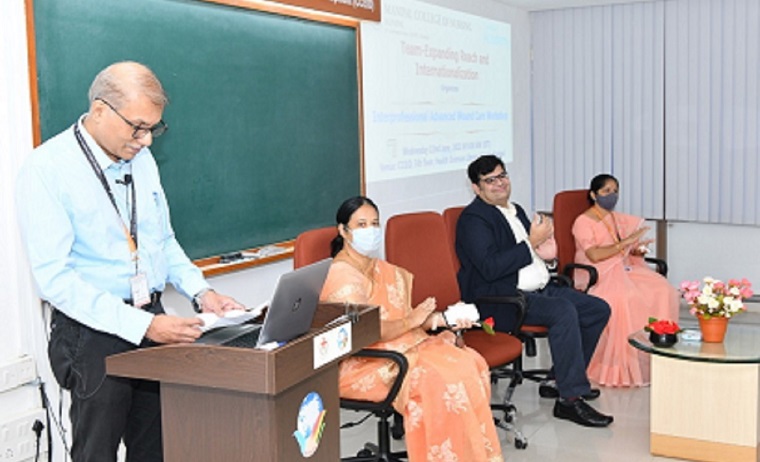 Dr Elsa Sanatombi Devi, coordinator and convener presented the glimpses of the IP Advanced Wound care and also the journey towards having a center collaboratively coordinated and support that can keep sustainability in the medical and nursing graduates’ training. She also highlighted the opportunity for R&D and Post Doc fellow invitation and having an Artificial Intelligence (AI) corporation in the area of wound assessment innovatively. Long term goal of the IP Advanced wound care aims to incorporate the same module into the medical and nursing curriculum.