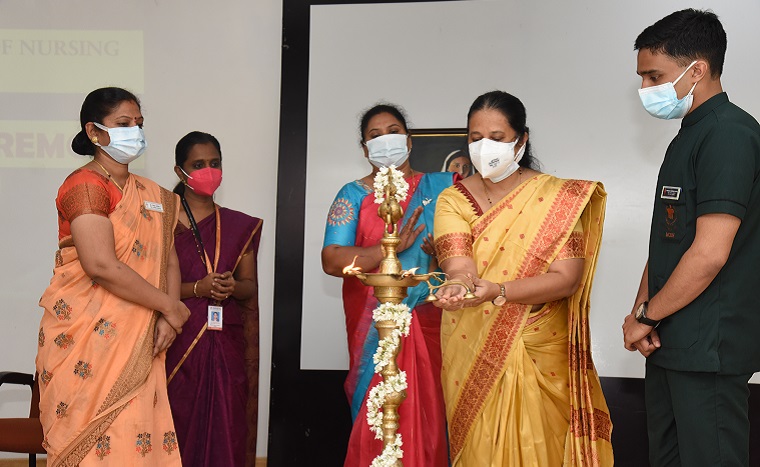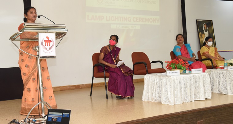 The lamp lighting ceremony for the 32nd batch of BSc Nursing students of Manipal College of Nursing, MAHE, Manipal was held on 31st January 2022 at Dr TMA PAI Lecture Hall, KMC, Manipal.