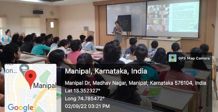 Dr. Toni Bewley, the Adjunct Faculty of MCON and Senior Lecturer, School of Nursing, EdgeHill UK deliberated a session on “Resolving Conflicts” to 1st semester BSc Nursing students on 02.09.2022 between 3.00 & 4.00 pm. She explained students’ behavior in a socially acceptable way. She further discussed the obstacles faced by the students and ways to overcome the same. Gender differences in reaction to any situation also were briefly discussed with a special note on how to behave with strangers. She also said information on any untoward situations to be given to the right people.