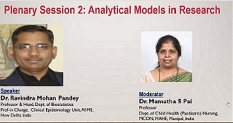 The second Plenary session of the conclave was on “Analytical Models in Research” by Dr Ravindra Mohan Pandey, Professor and Head, Department of Biostatistics, Prof-in Charge, Clinical Epidemiology Unit, AIIMS, New Delhi, and the session was moderated by Dr Mamatha S Pai. In the session, Dr Pandey gave a general overview of the statistical basics in Research Analysis with relevant examples. He highlighted the types of variables from an analysis point of view including correlation, multivariate statistical methods, and the practical issues in regression analysis. He explained how the analysis is interpreted in research and the implications in the research study under consideration.