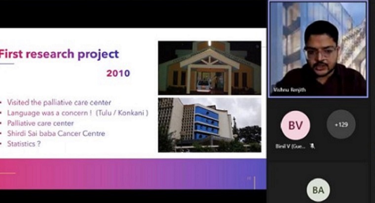 Dr Vishnu Renjith shared his experience in conducting his first research project and explained the challenges that could be faced while planning and conducting research and ways to overcome them. He also gave a word of encouragement to nursing students. The session was very informative and provided a well-appreciated guide for the new researchers to plan and implement research projects. A total of 155 participants, including undergraduate & postgraduate students, PhD scholars, project staff and faculty of MCON attended the session. E-certificates were given to all the participants.