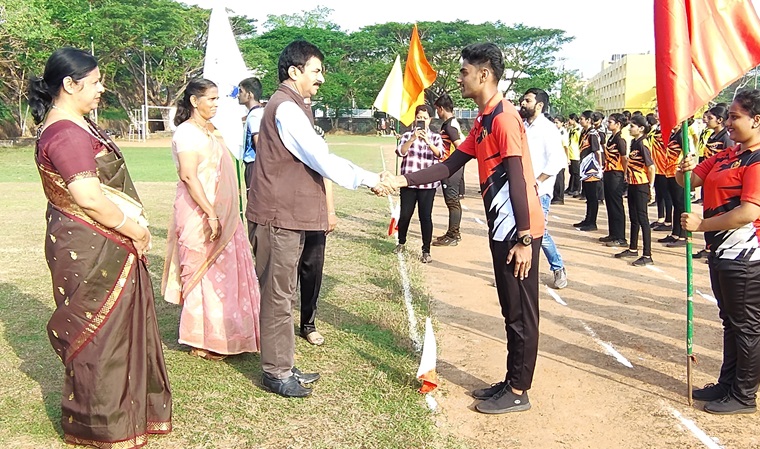 The program commenced at 8.30 am with the March past by the students of MSON with the Band troop of TMA Pai EMHS School, Kunjibettu, followed by the introduction of the teams to the chief guest, by Ms. Shanti P, Assistant Director, Physical Education Department, KMC, MAHE, Manipal. Dr. Leena Sequeira, Principal, MSON, MCON, MAHE, Manipal, welcomed and introduced the chief guest. Prof. Varadesh Hiregange addressed the gathering and declared the sports meet 2024-25 open. He spoke about the advantages of sports activities and said that rather than using the term sportsman we can use the word ''sportsmanship''. He said there are no sports losers, as everyone benefits from the activities. Prof. Varadesh concluded his speech by mentioning the care and compassion of nurses and congratulating everyone. The event progressed with a torch ceremony by students. The solemn oath for the event was taken by Mr. Hilton Lawrence Noronha, sports secretary, 3rd-year Diploma student, MSON. Finally, the program ended with the chief guest's felicitation of the band set students and their teacher. Appreciation awards were given to the students who won the competition at the university level. Mrs. Saraswathi Hebbar, lecturer, MSON, MAHE, Manipal, delivered the vote of thanks. Ms. Sania Dsa and Ms. Tenzin Lhadon were the master of ceremonies for the program.