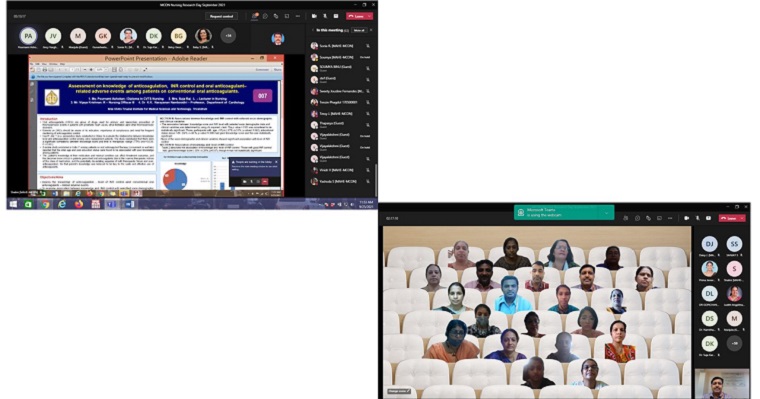 The Exemplary Research and innovation team (IoE, Pillar – II) of Manipal College of Nursing, MAHE, Manipal, has organized Nursing Research Day on 25th September 2021 through virtual mode. The goal was to provide an additional forum for faculty and students an opportunity to present their research and igniting their own research and innovative ambitions. A total of 150 participants attended the program and 20 participants presented e-posters and innovative ideas through the Microsoft team.