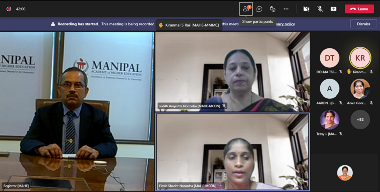 Orientation Programme for students admitted to BSc Nursing offered by Manipal College of Nursing (MCON), Manipal for the academic year 2021-22 was held on 1st October 2021 through MS Teams web platform.