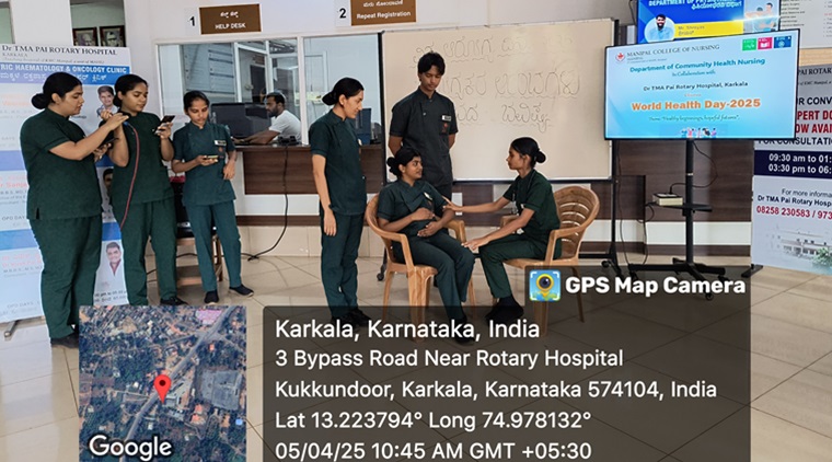 The Department of Community Health Nursing, MCON, MAHE, Manipal observed World Health Day 2025 along with Undergraduate and Postgraduate students. As part of World Health Day weeklong awareness activities were organized on the theme: Healthy Beginnings, Hopeful Futures from April 4 to 7, 2025.