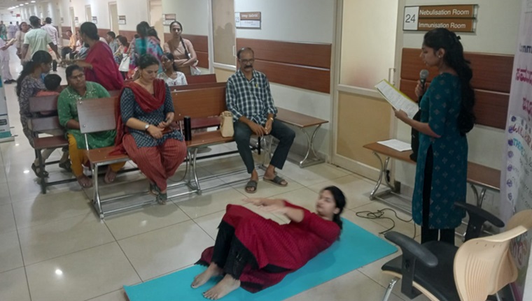 On April 4, 2025, an awareness program on the theme "Healthy Beginnings, Hopeful Futures." for Antenatal and Postnatal mothers and Children was conducted at Obstetrics and Gynecology OPD, Dr. T.M.A. Pai, Hospital, Udupi. The program aimed to promote awareness about the importance of Antenatal and Postnatal care, Breastfeeding, hygiene, diet, immunization, family planning, follow-up, and care for mother and child. The students demonstrated antenatal and postnatal exercises, emphasizing their importance for a healthy pregnancy and postpartum period. A detailed session on breast self-examination using flashcards and demonstrated the techniques and steps of breast self-examination with the help of a model. Pamphlets regarding breast self-examination were distributed to women. The program was conducted by Final year BSc. Nursing students and coordinated by Mr. Amol Powar. Assistant Lecturer, Dept of Community Health Nursing, MCON, MAHE, Manipal.