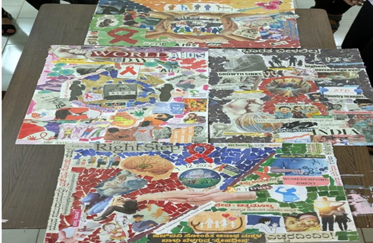 The Health and Social Welfare Committee of the Student Nurses’ Association 2024-2025, Manipal College of Nursing, organised a collage competition to commemorate World AIDS Day. The event was conducted on December 2, 2024, from 4:00 to 5:00 pm at MCON. A total of 12 participants grouped into four teams participated in the competition. The program was coordinated by Ms. Riona Dsouza, Chairperson, of the Health and Social Welfare Committee. The program contributes to SDG 3: Good health and well-being and SDG 4: Quality education.