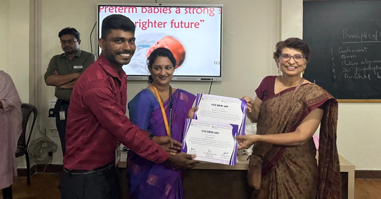 The Department of Child Health Nursing, Manipal College of Nursing, Manipal (MCON), Manipal Academy of Higher Education (MAHE), in collaboration with the Department of Neonatology, Kasturba Medical College (KMC), Manipal, observed the Newborn Week celebration. The theme for this year was “Give Preterm Babies a Strong Start for a Brighter Future”. The program was conducted with an aim to create awareness among the parents and caregivers of newborns and premature babies, healthcare professionals, and students to promote practices that ensure healthy survival of the newborns, thus contributing to attainment of the Sustainable Development Goal (SDG) 3, “Good health and well-being and goal 4, Quality Education.