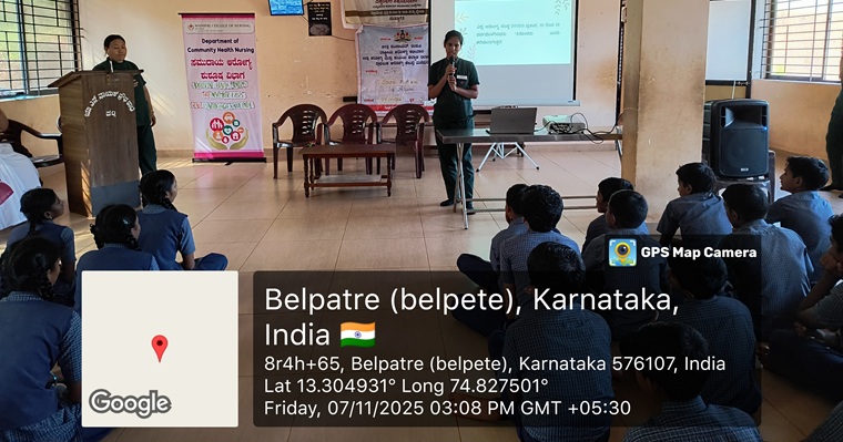 On November 7, 2025, the Department of Community Health Nursing and II-year MSc Nursing students of Manipal College of Nursing (MCON), in collaboration with NSS of MCON and PHC Manipura, conducted a school health awareness program on "Adolescent Health Problems" at U.S. Nayak High School, Patla.