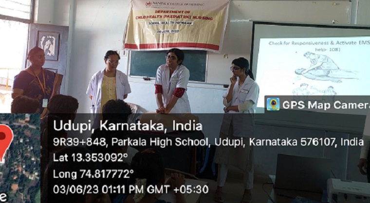 The First and Second Year MSc Nursing students and faculty members from the Department of Child Health Nursing, Manipal College of Nursing (MCON), Manipal Academy of Higher Education (MAHE), Manipal, in collaboration with Rotary Club, Parkala conducted a school health program in Parkala High School, Parkala, Udupi District, Karnataka on 3rd June 2023, between 11.30 a.m. and 1:00 p.m. The school health program was organized under the guidance of Dr. Binu Margaret, Assistant Professor- Selection Grade, Dr. Sangeetha, Assistant Professor- Selection Grade, and Dr. Baby S Nayak, HoD, Department of Child Health Nursing, MCON, Manipal. The aim of the program was to create awareness on “First Aid and Resuscitation” for the students of classes 8, 9, and 10 and faculty members of Parkala High School, Parkala, and Rotary Club members of Parkala Rotary Club. The outreach program contributed towards sustainable development goal 4 (SDG 4) to achieve quality education.