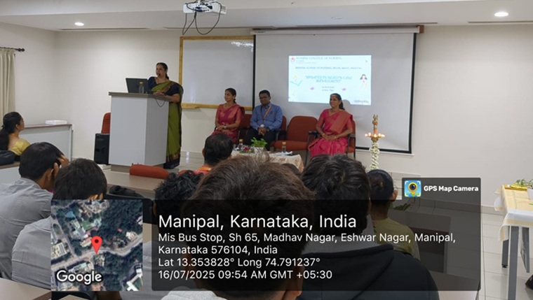 Manipal School of Nursing, MCON, MAHE, Manipal, had organized a seminar on ‘Updates in Health Care Management’ on July 16, 2025, from 8.00 am to 12.00 pm for final year DNM students. The chief guest of the program was Dr. Shashidhara Y N. Professor and Head, Department of Community Health Nursing, MCON, MAHE, Manipal. Dr. Leena Sequira, Principal, MSON, MCON, MAHE, Manipal, introduced the chief guest and welcomed the gathering. Dr. Judith A. Noronha, Dean, MCON, Manipal, addressed the participants on the importance of nursing care. She mainly focused on the 3 C’s – care, compassion, and commitment, and also advised the students to focus on patient care by using knowledge and technology. Dr. Shashidhar Y N addressed the participants on the importance of prevention of communicable and non-communicable diseases by using proper personal hygiene, environmental hygiene, and utilization of community health programmes, and also focused on understanding the purpose of care before delivering to the patient. The first session was on Legal and Ethical Issues in Patient Care by Ms. Prathibha Lydia Braggs, Lecturer, MCON, MAHE, Manipal. She highlighted the ethical principles and legal responsibilities of a nurse and emphasized common ethical issues in patient care. Ms. Sweety Jousline Fernandes, Assistant Professor, MCON, MAHE, Manipal, elaborated on Effective Communication in Health Care, which included strategies to improve effective communication and appropriate communication etiquette to be followed while working in a health care setting. Dr. Soumya Christabel, Assistant Professor, MCON, MAHE, Manipal, explained the Nurse’s role in the administration of medication. She discussed rights, routes of drug administration, and also stressed medication errors and how to prevent errors while administering medications. Fifty-seven students participated in the seminar. Participants expressed that the sessions were interesting and were useful for their future. The objective of the seminar was to enhance knowledge, skill, and practice in health care. The event was coordinated by Ms. Bharathi, Assistant Lecturer, MSON, MCON, MAHE, Manipal. This seminar contributed to SDG 4: "Quality Education".