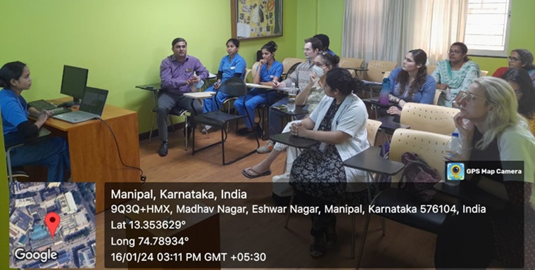 Case-based discussion by students of ‘Nurse Practitioner in Critical Care,’ MCON, MAHE, and nurse practitioner students of MGH Institute of Health Professions, Boston, guided by Dr. Jyothi Chakrabarty, Program Coordinator, MCON, MAHE, Dr Vishal Shanbhag, Medical Preceptor, KMC, MAHE, and Dr Kaveri M. Roy, Associate Professor, Nursing, MGH Institute of Health Professions, was done on January 16, 2024. Students from both countries presented a case that enhanced their understanding of the subject matter. They exchanged information on the similarities and differences in critical care between the two countries.