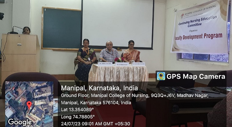 The Continuing Nursing Education committee of Manipal College of Nursing MAHE Manipal organized Faculty Development Program on July 24 & 25, 2023. The chief guest, Dr K Ramnarayan, Pro chancellor, Sikkim Manipal University, Emeritus Professor of Medical Education – MAHE, sensitized the faculty about formal and informal quadrants of individual and group learning and mentioned that faculty Development program occurs on day to day basis.