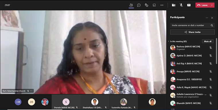 The Continuing Nursing Education committee of Manipal College of Nursing MAHE Manipal, organized a virtual Faculty Development Program on July 27 & 28, 2021 through the MS team platform. The chief guest for the inaugural session Dr. Sharath Kumar Rao K, Dean KMC Manipal, MAHE appreciated the efforts taken by the institution and congratulated Dean and her team for successfully holding FDP. He expressed that FDP helps in coaching faculty to update the teaching, administration, research, and clinical skills. Chief Guest also emphasized the importance of interprofessional collaboration where faculty from different professions work together in teams and collaborate with each other which indirectly enhances students learning during these challenging times.