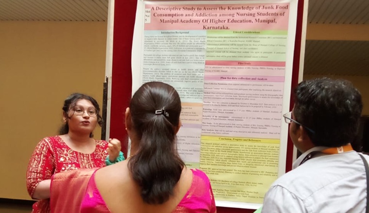 A total of 20 groups competed for the best Research poster presentation, which was evaluated by Dr. Leena Sequeira, Principal of Manipal School of Nursing, MAHE, and Dr. Shashidhara Y N, Professor and Head of Community Health Nursing, MCON, MAHE. The best poster presentation was awarded to Ms Angel Mary Biju, Mr Midhun S Nair, Mr Arnold Mokshit Ammanna, Ms Simmy Elizabeth Baby, Ms Jemimah James David, Preethi Immanuel, Ms Adithya Gireesh, Ms Annette Shibu, and Ms Joshna Jose.